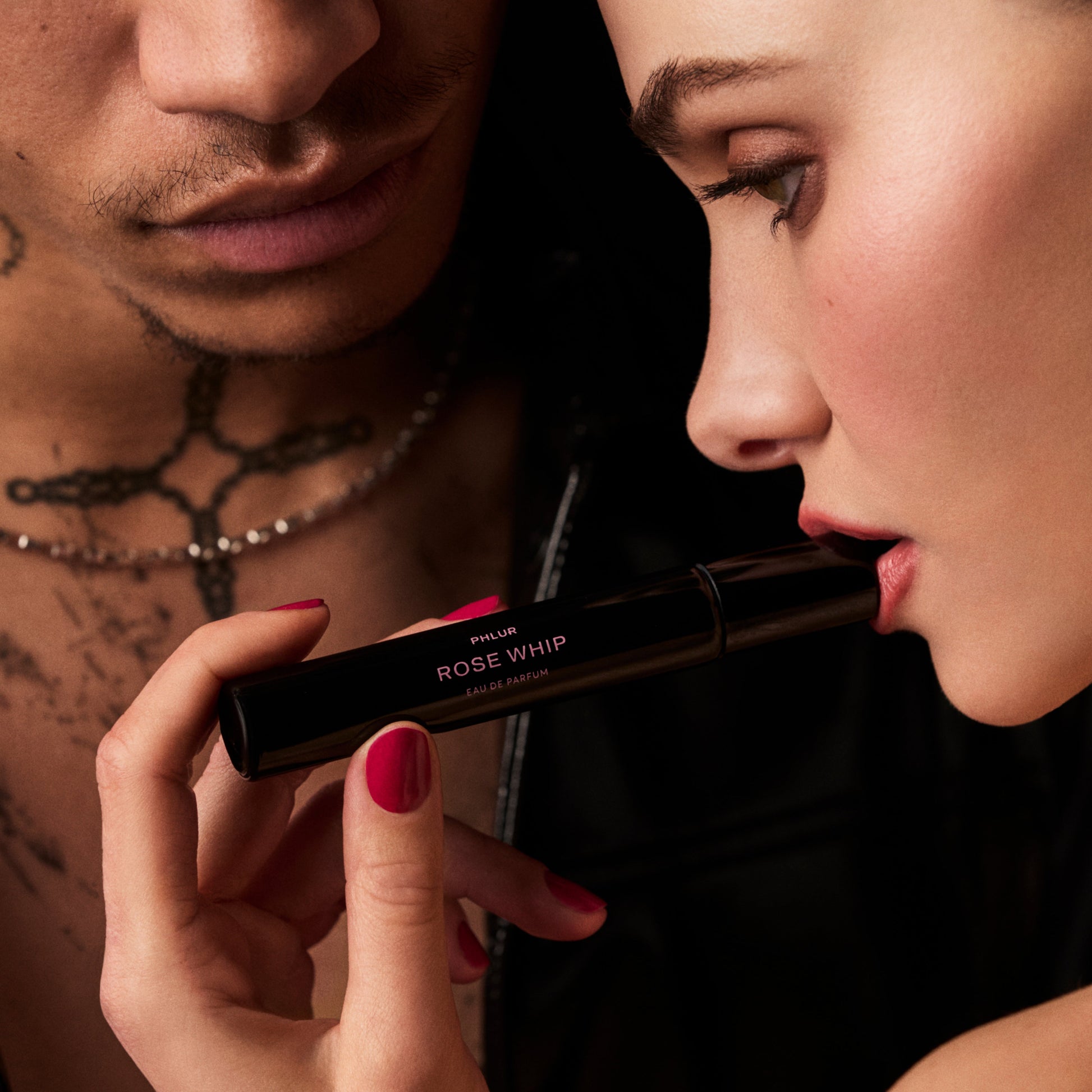 Rose Whip is a delicate, powerful, and provocative scent that challenges the traditional idea of a rose fragrance. Velvety rose, delectable black currant, and honeyed osmanthus dance above a leathery base of deep amber, cashmere wood, and sensual musk. An enticing contradiction that's seductively nuanced.